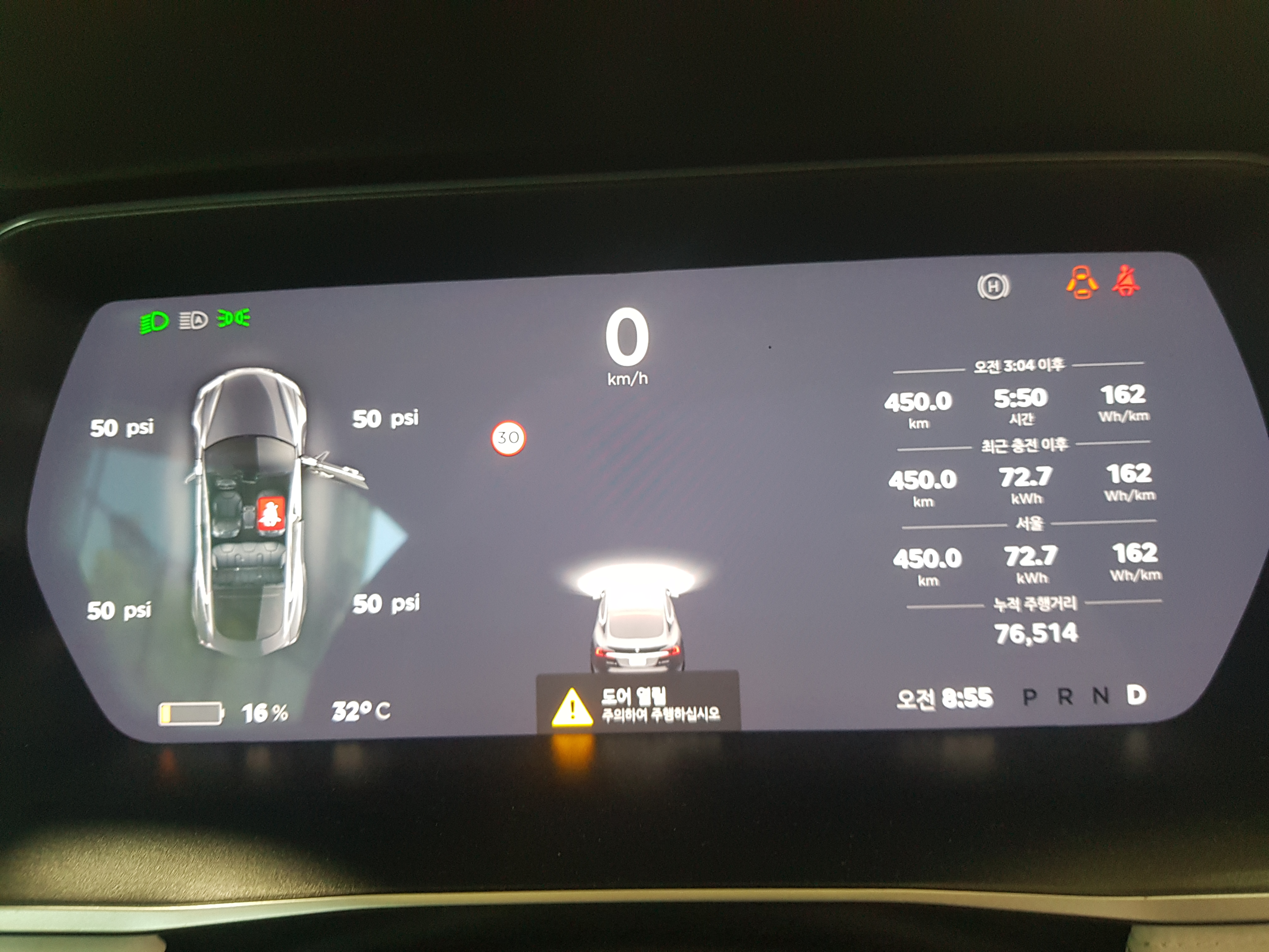 시간이 여유로웠기에 제한속도로 오토파일럿을 걸어놓고 전구간 오토파일럿으로 주행하였습니다.