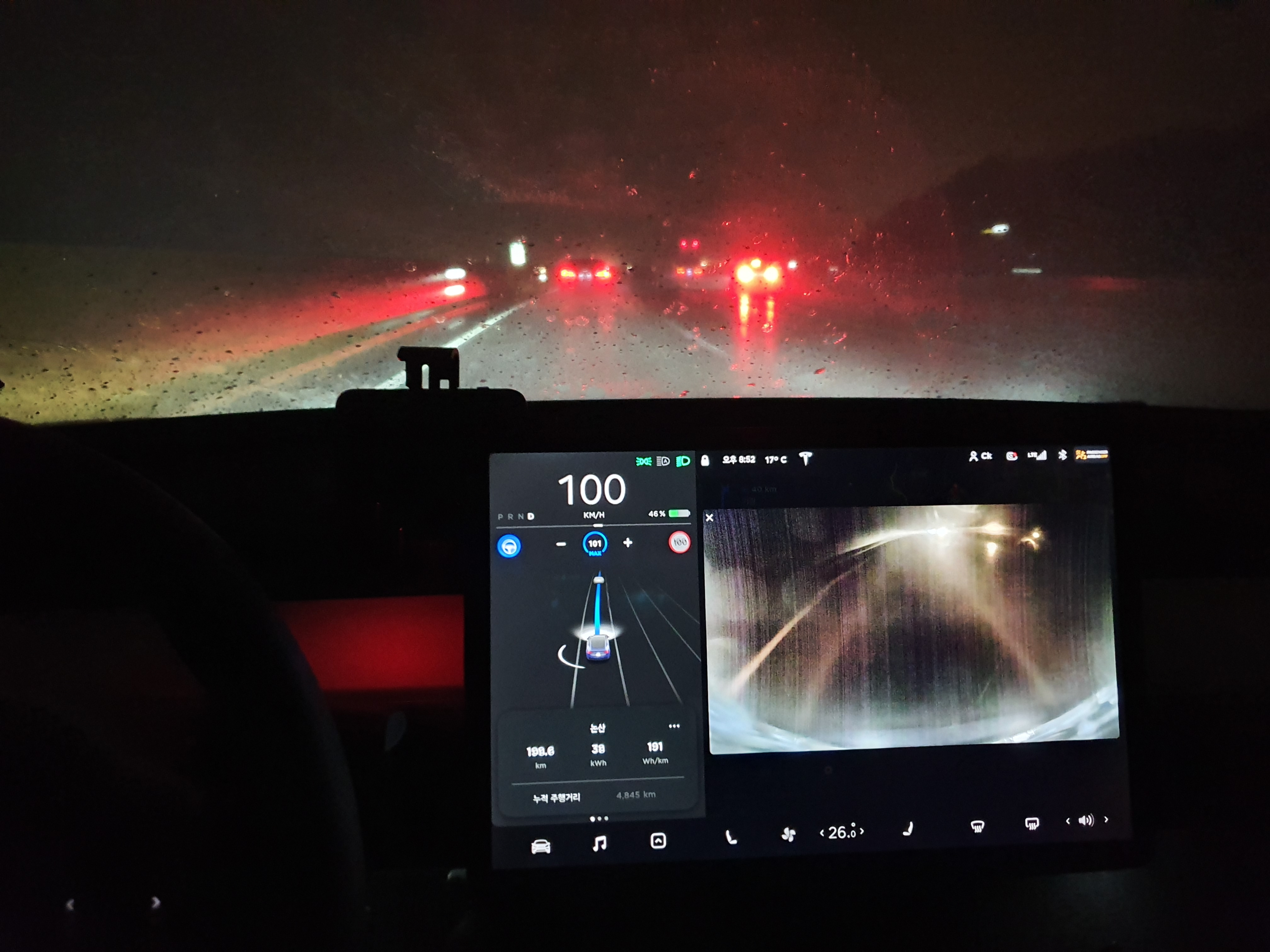 이정도 악천후에서도 NOA사용이 가능하더군요... 비바람이 좀더 세지니까 악천후로 기능을 사용할 수 없다고 나오긴 했지만 상당히 즐거운 경험이었습니다.
