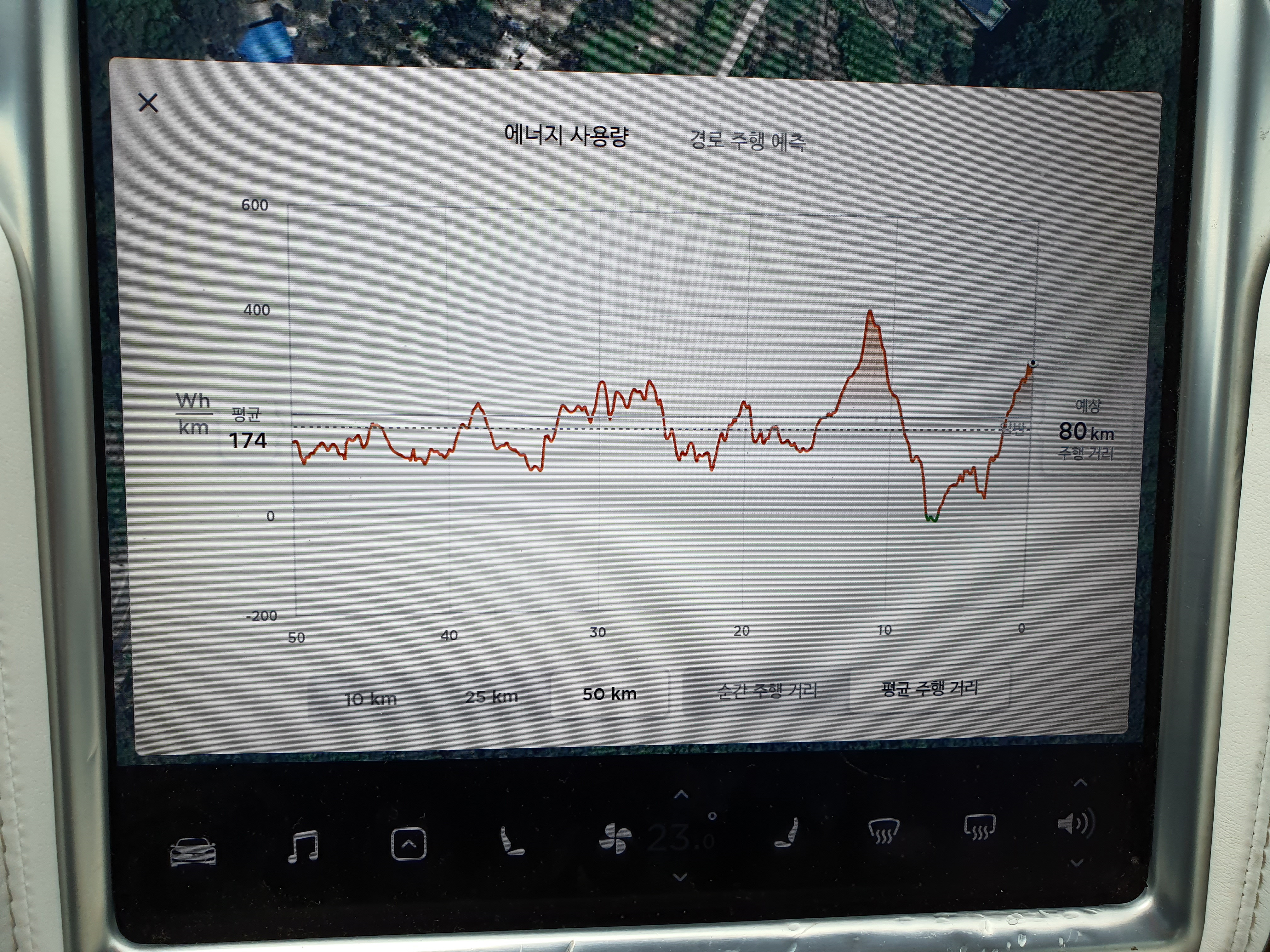 출발시 차량에서 예측한 왕복주행시 남는 배터리량이 아주 정확합니다.