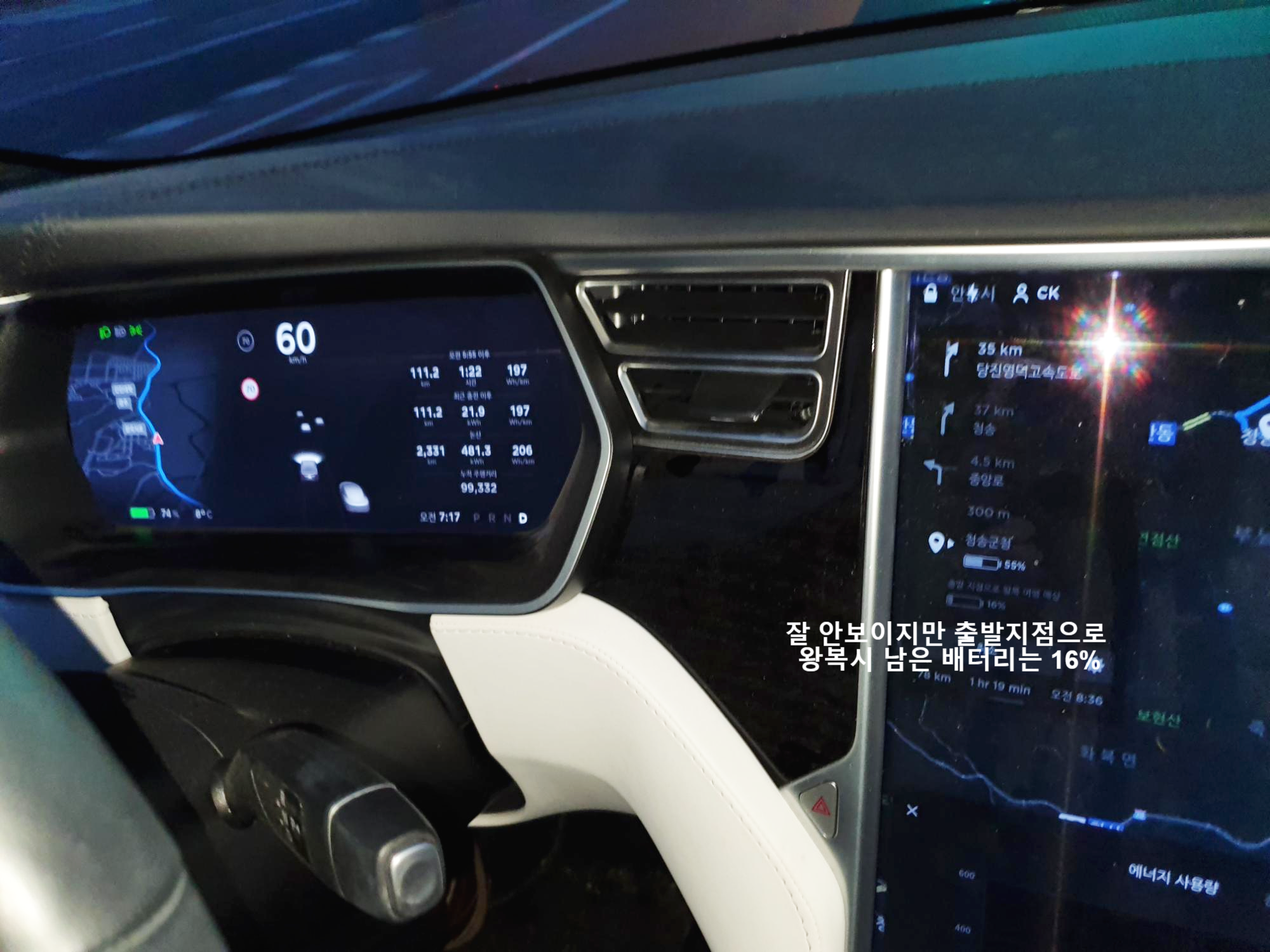 모델3P가 S100D의 90%정도의 주행거리로 계산하면 됐었기 때문에 3로 다녀왔어도 6%남기고 무충전 가능하긴 했겠네요...ㅋ