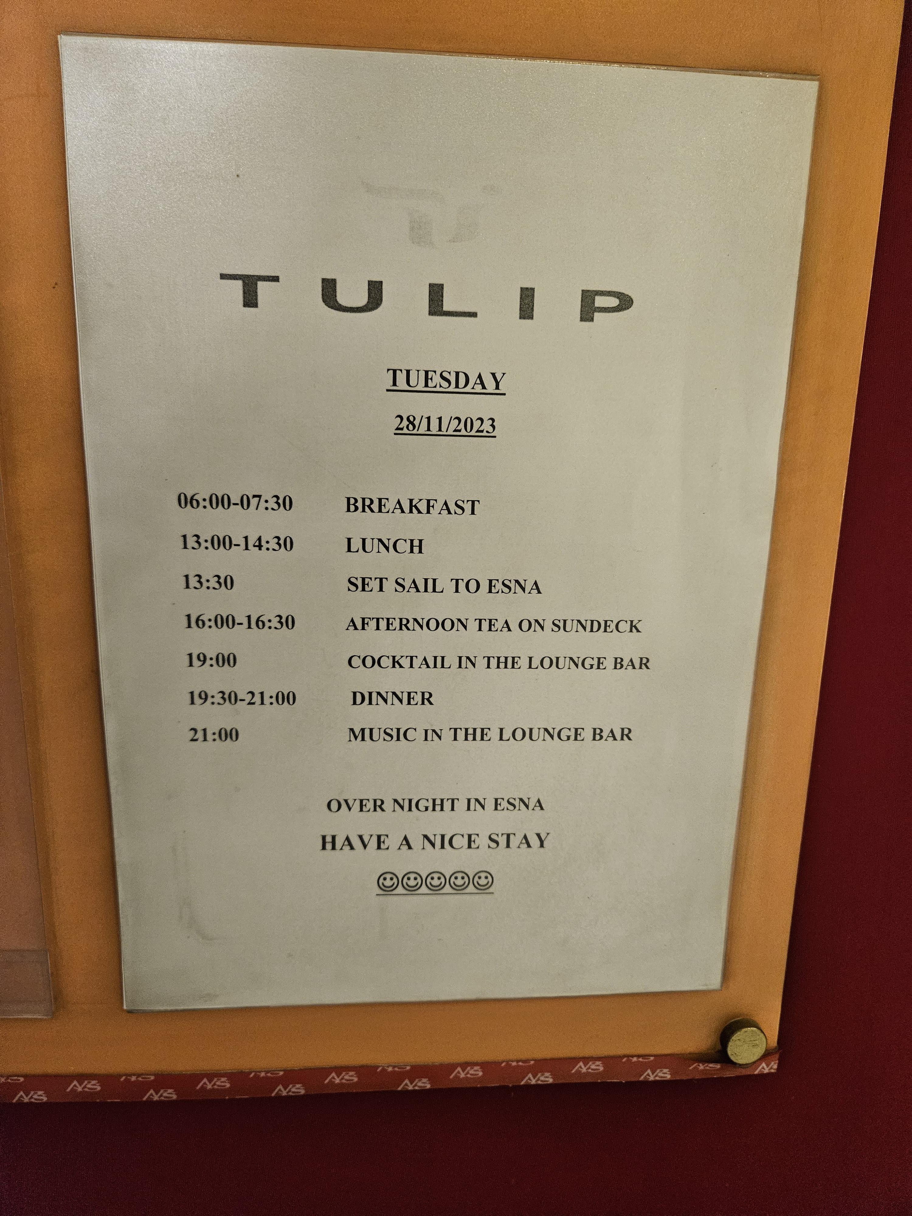 나는 가성비보다는 퀄리티이기 때문에 미리 럭셔리급 배의 스위트룸을 예약했다. 내가 예약한 배는 코랄블루사의 m/s tulip. 성수기인 겨울철이라 가격이 많이 비쌌고(디럭스방이 4박 800달러였다. 비수기인 여름에는 보통 절반가격인 듯) 테라스가 있는 스위트룸이어서 가격이 4박 3080달러. 약 400만 원이었다. 승선하기 전까지도 이 가격이 맞나 불안하긴 했지만 조금 더 좋은 배인 히스토리아가 4박에 600만 원인걸 보고 호구당한 건 아닌 걸 확신했다. 그리고 실제로 타보니 유튜브나 블로그에서 봤던 배들 하고는 차원이 다르게 좋아서 안심했다. 그래서 다음에 이집트를 다시 간다면 히스토리아를 타봐야지.