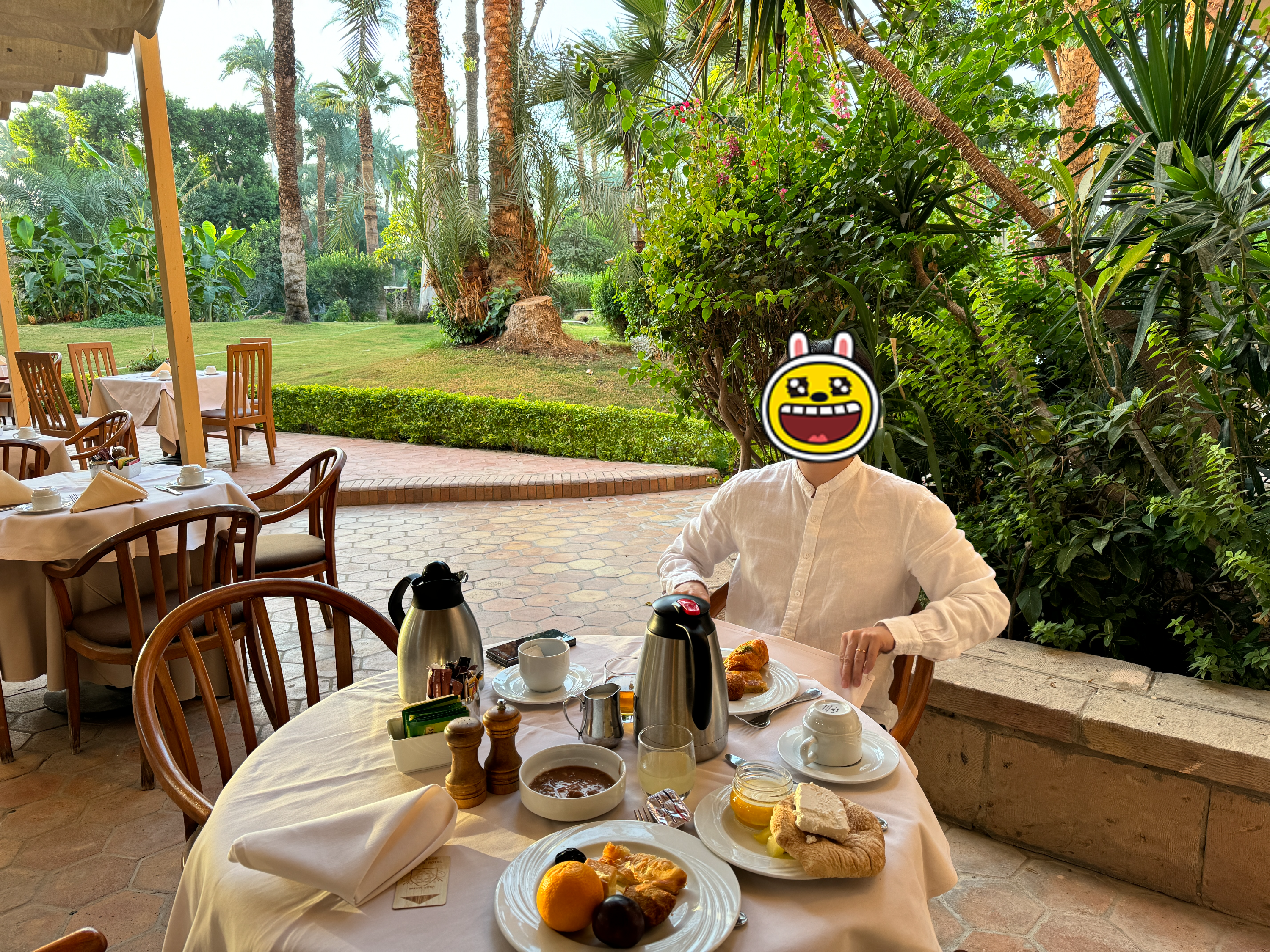 룩소르 신전과 걸어서 5분 거리에 호텔 부지 내에 아름다운 정원이 조성되어 있었다. 플라밍고나 다양한 새들도 볼 수 있고 아름다운 정원이 보이는 곳에서 먹는 조식도 훌륭했다. 이집트음식코너도 있고 서양음식코너도 있고 즉석조리코너도 있음