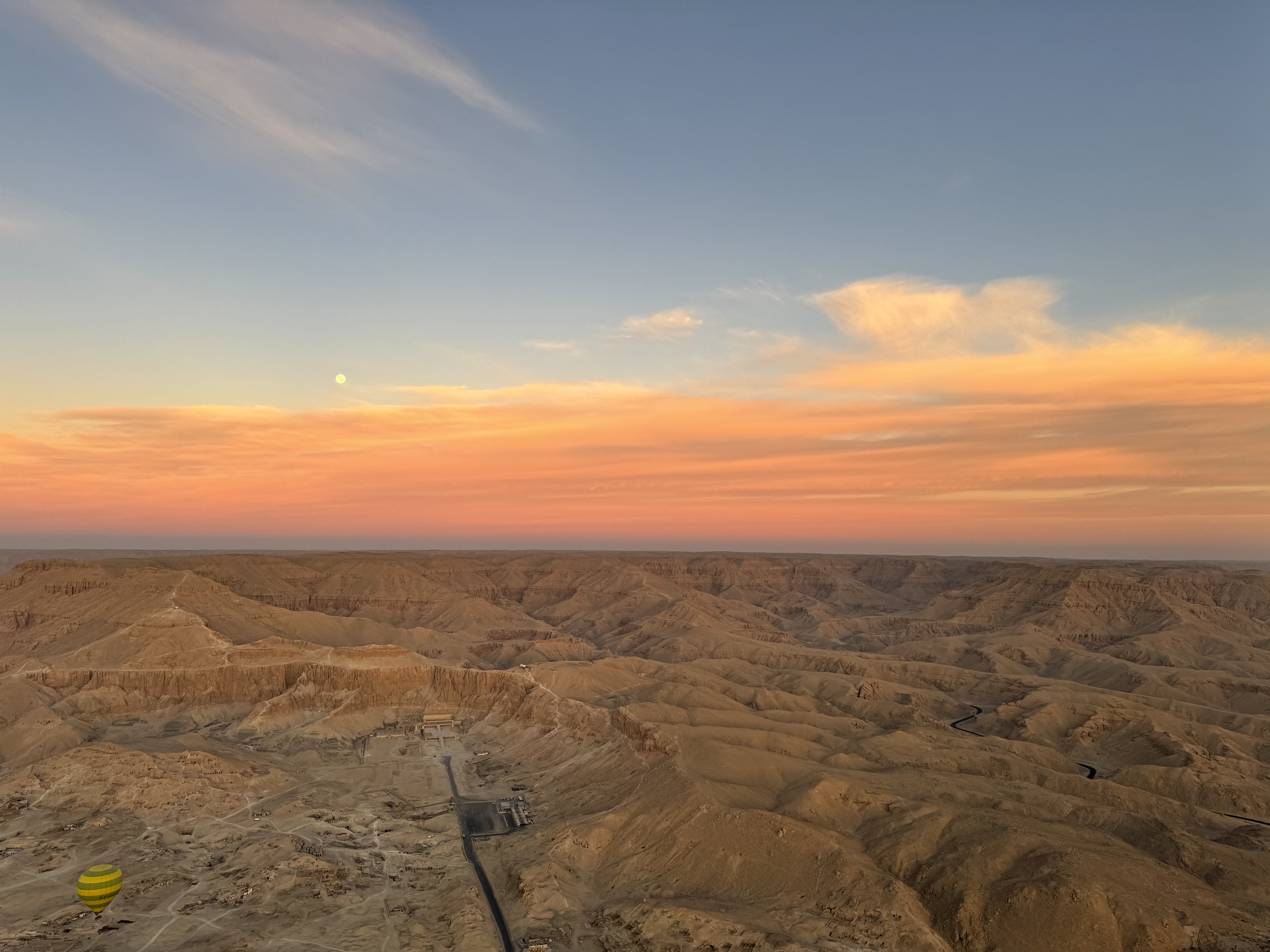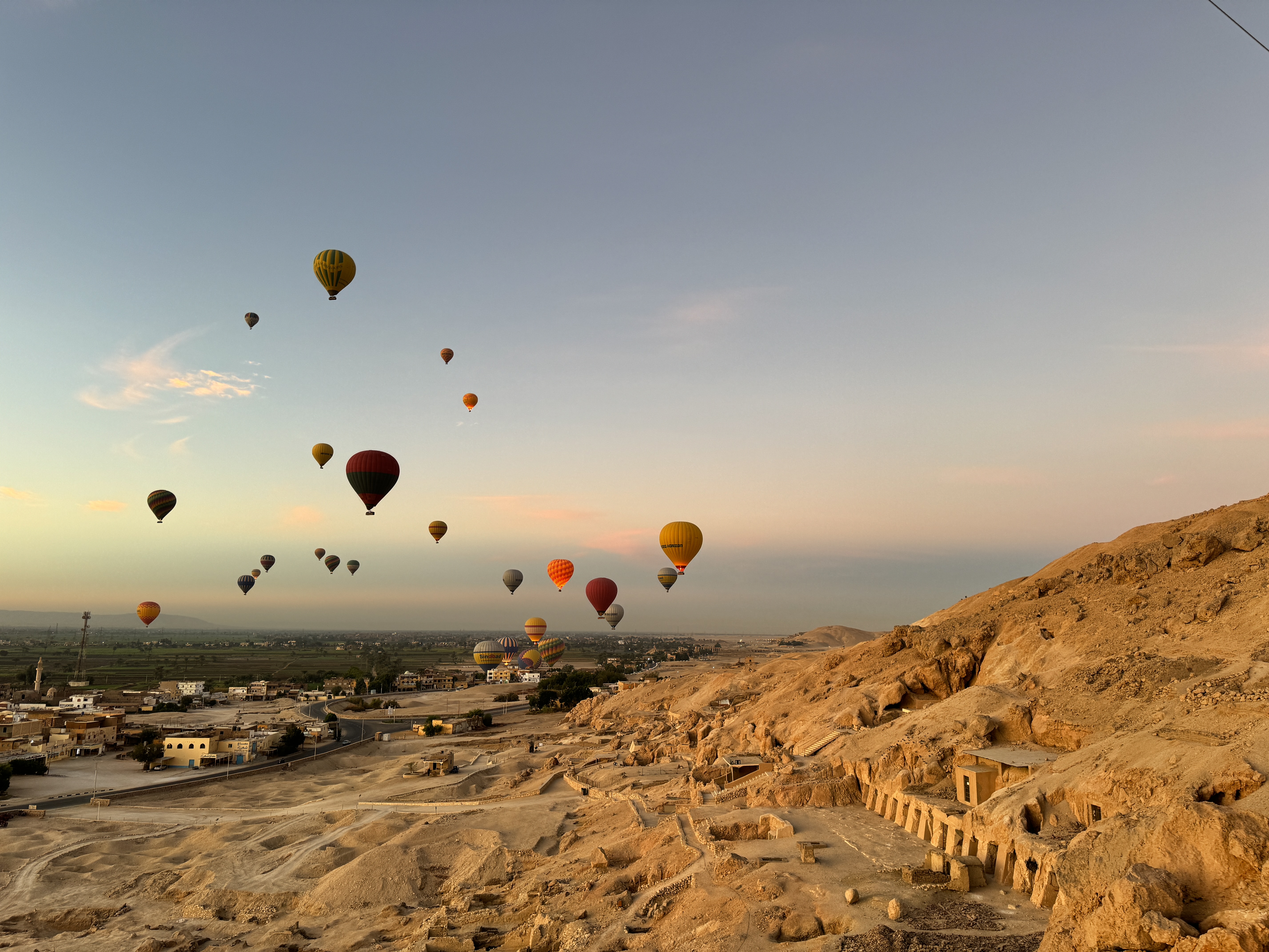 룩소르의 벌룬투어는 하트셉수트 장제전과 왕가의 계곡풍경이 메인인데 자리 선정 실패로 카파도키아에서 탑승했던 것보다는 아쉬웠다. 카파도키아 때는 맨 마지막에 탑승해서 가장자리에서 뻥 뚫린 파노라마뷰가 가능했는데 룩소르 벌룬은 탑승 전 체중까지 기입하게 하더니 그룹이 강제로 묶여서 뒤쪽 중간 자리에 타게 되었다. 그래도 여기는 겨울이 성수기여서 벌룬 개수는 많아 보였다.