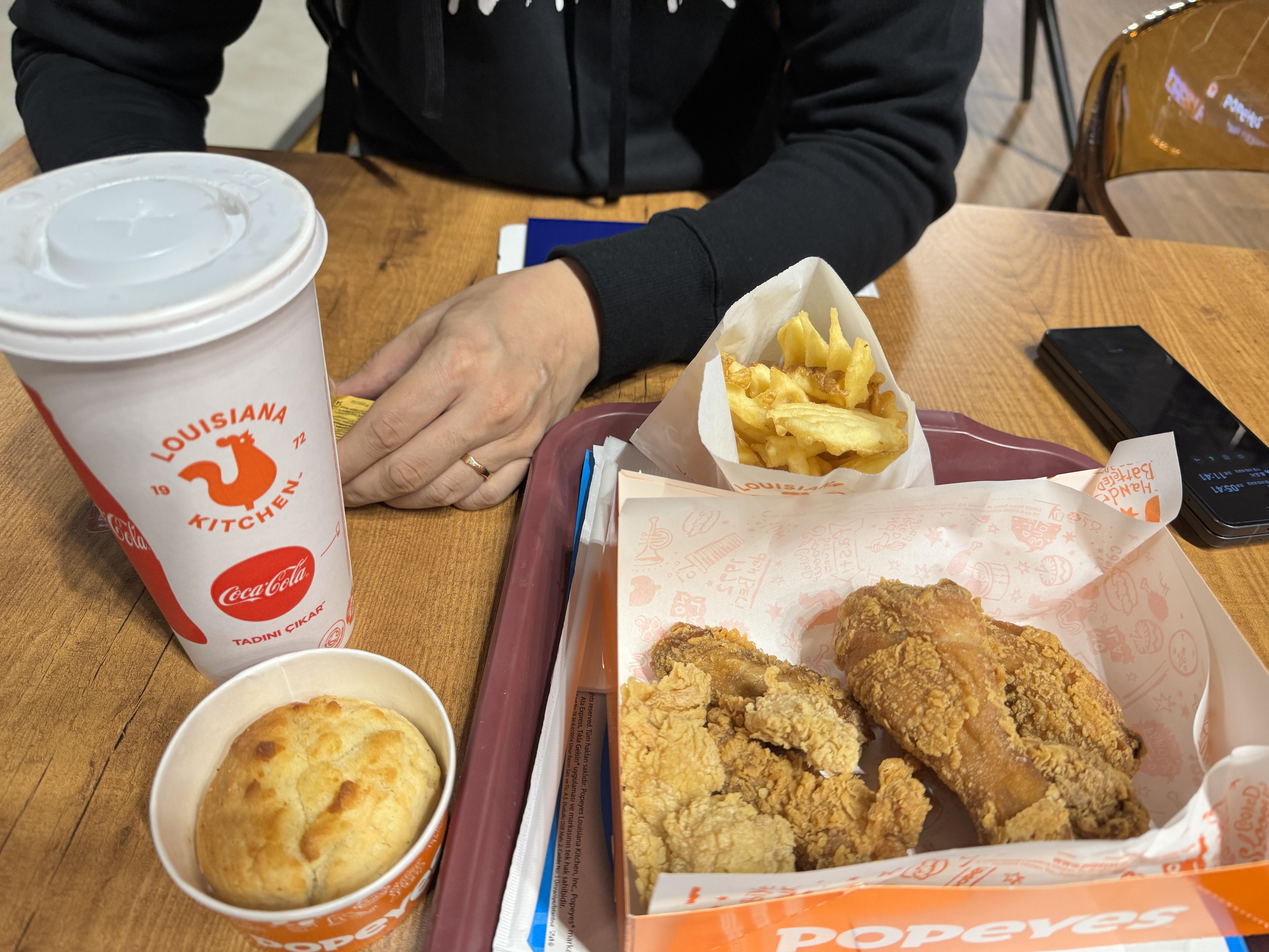 이스탄불에서 이집트 카이로까지는 이집트항공을 이용했다. 3시에 셔틀을 탄 덕분에 일찍 도착해서 줄을 설 수 있었는데 일처리가 뭐 이리 느린지 1시간 넘게 줄을 서야 했다. 그래도 다행히 페가수스항공에 데어서 지연출발될까 걱정했지만 정시에 출발했다. 튀르키예에서는 터키항공을 탔는데도 기내식을 주지 않았어서 기내식이 없다 생각하고 치킨을 사 먹었다.