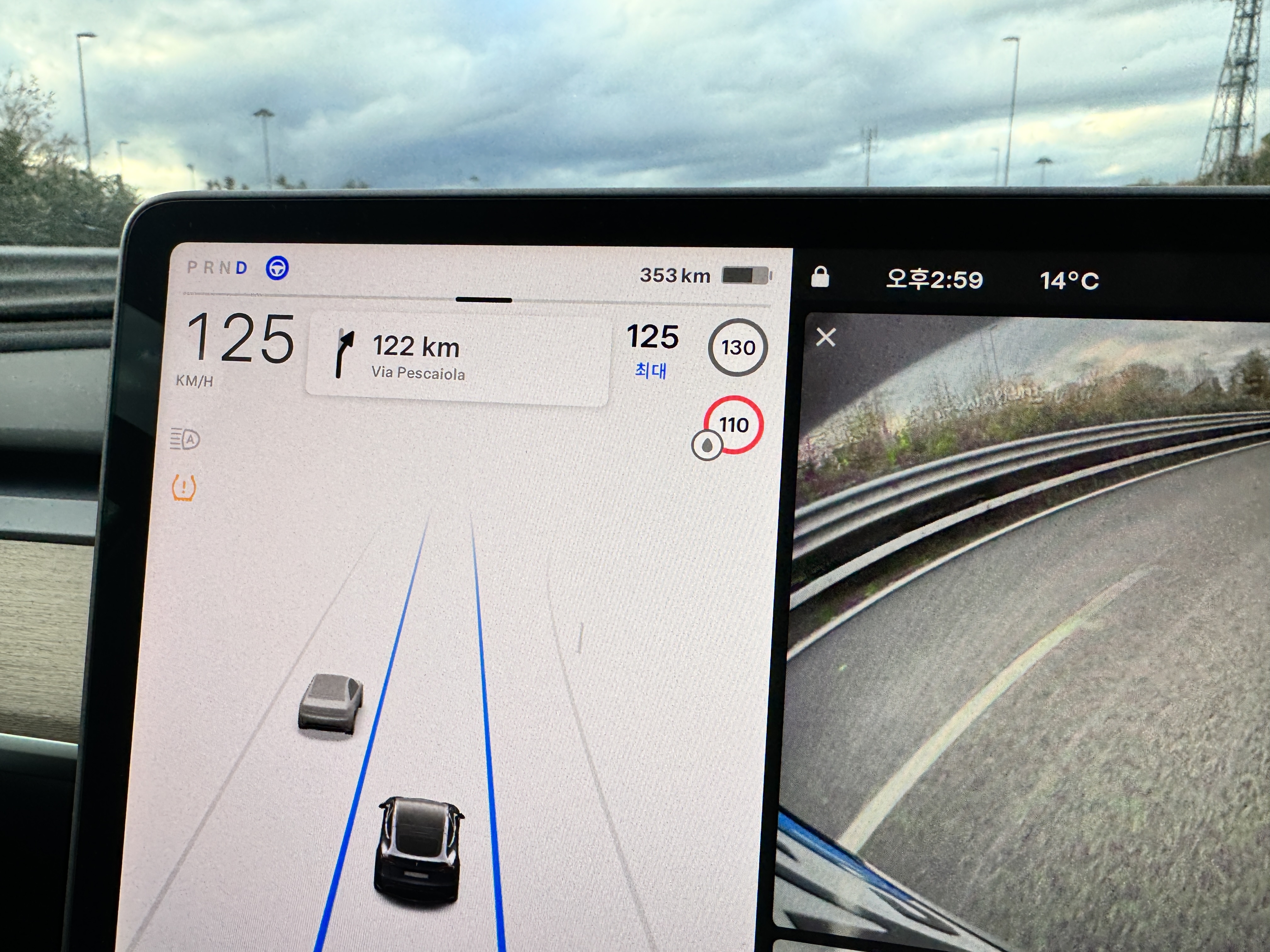 UI언어를 한국어로 바꿔주니 한국에서 타던 차와 동일하다. 이 맛에 테슬라를 탄다.