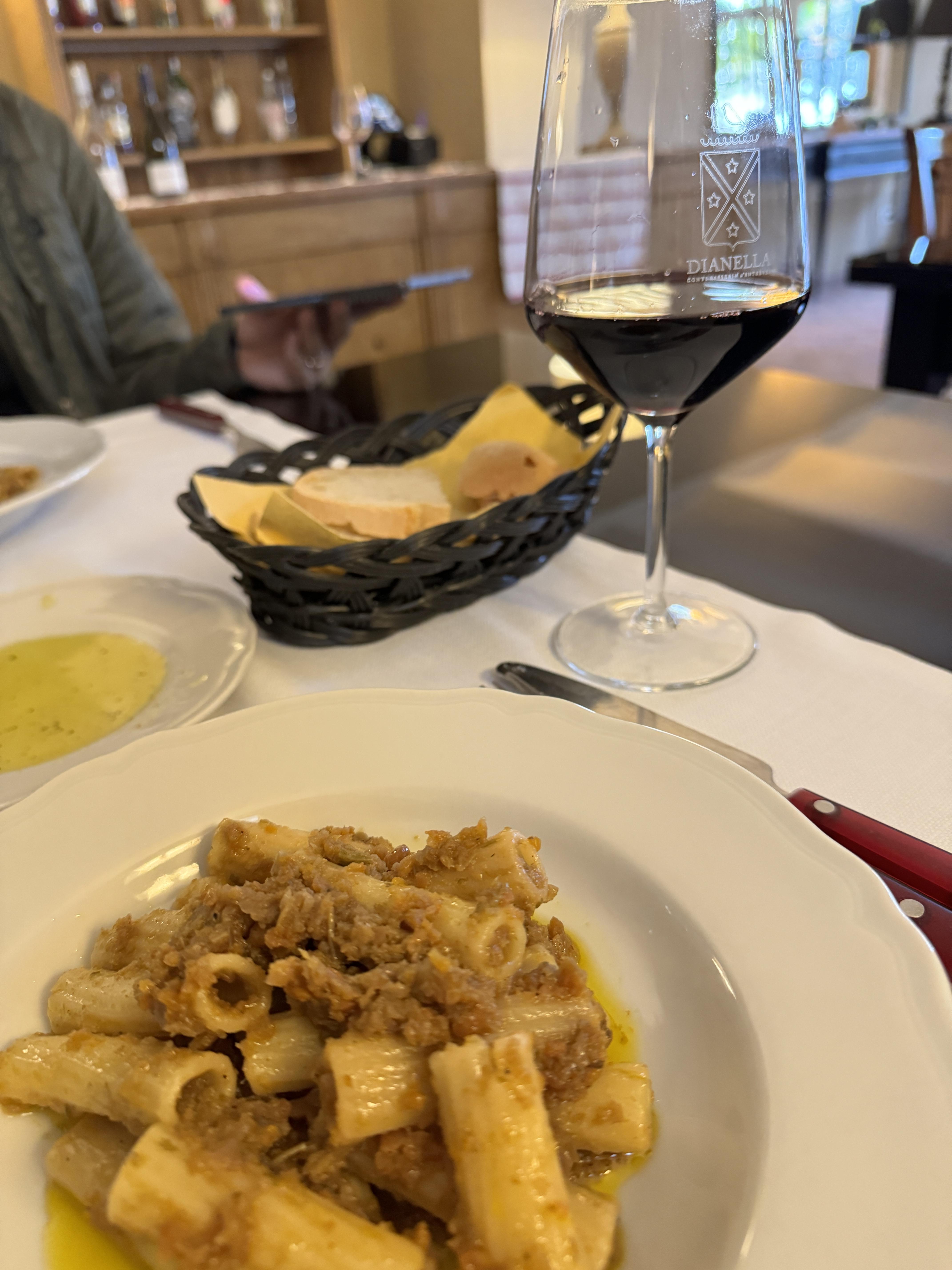 구글 리뷰에서 추천이 많았던 메뉴인 그라미냐 알 페코리노와 튀긴 스테이크를 시키고 하우스와인 1잔을 시켰다. 디저트는 맛없다는 리뷰가 많아서 안 시켰다. 페코리노치즈 범벅의 꾸덕한 그라미냐 파스타도 맛있었고, 튀긴 스테이크는 완전 처음 보는 요리였다. 돈가스도 아니고 튀김옷을 입힌 T본스테이크인데 튀김옷 맛은 거의 안 나면서도 바삭한 표면. 그리고 튀김의 내부는 스테이크. 뼈에 붙은 고기까지 야무지게 발라먹고 나왔다. 주변을 둘러보니 모든 테이블이 우리와 같은 조합으로 주문을 한 것 같다. 이탈리아 사람들도 여기에서만 맛볼 수 있는 요리라고 하고 멀리서 일부러 찾아온다더니 정말인 것 같았다. 다들 리뷰 보고 온 느낌 ㅎ