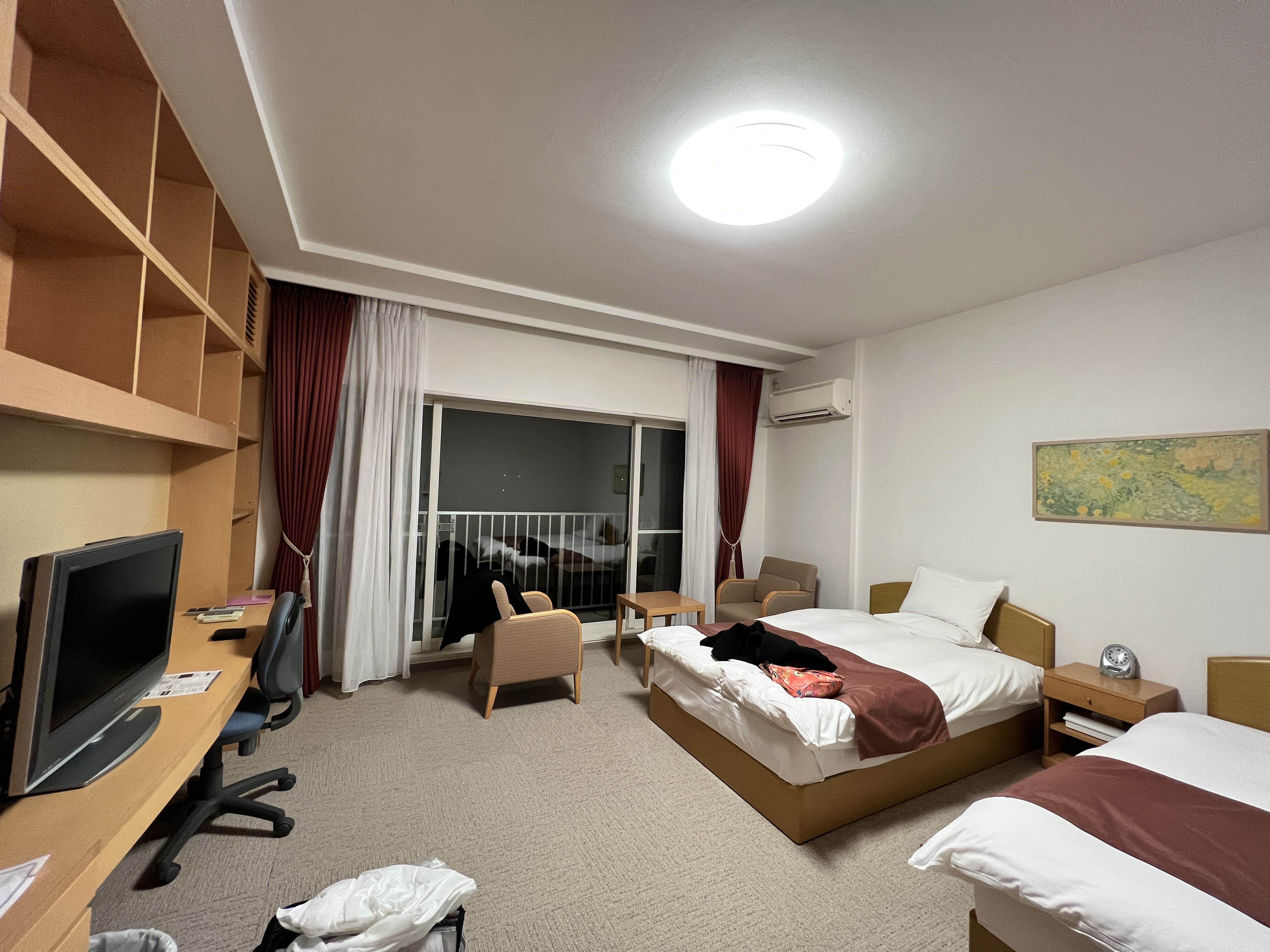 평소라면 2차까지 가지 않는데 이번 여행은 최소일정으로 최대한 많은 곳을 가야 해서 2군데를 빠르게 클리어했다. 식사를 마치고 학교로 향했다. 특별히 학교에서 기숙사 손님용 방을 내어주어서 1박 3500엔의 저렴한 가격에 숙박을 했다.