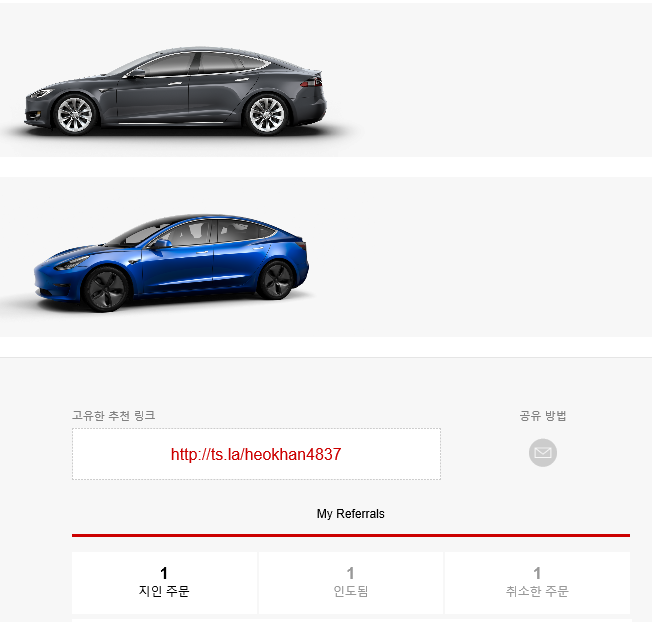 그리고 계정홈에서 보이는 두대의 테슬라 ㅋㅋ