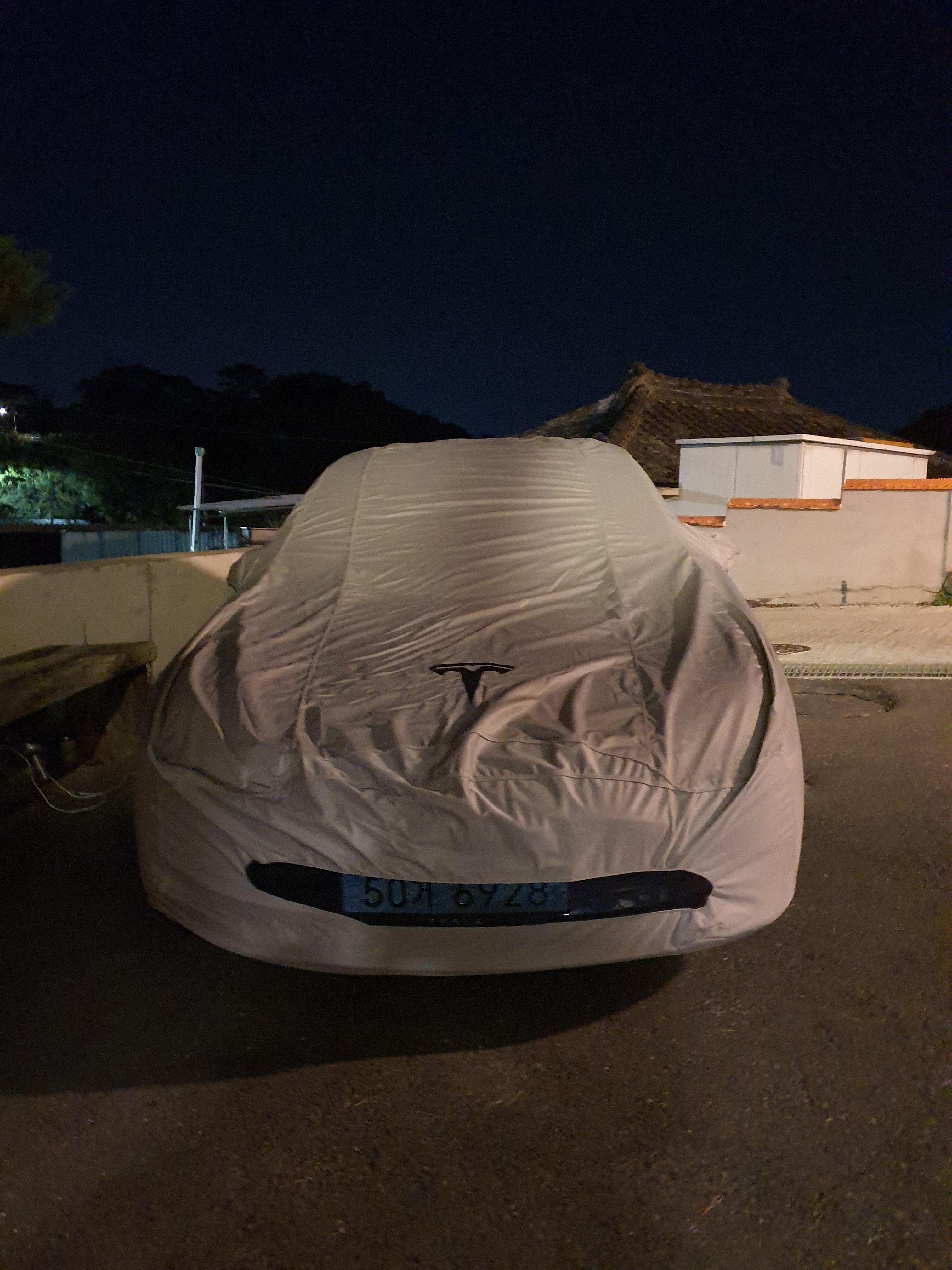 짐을 양 사이드에 둬서 모델s와 모델3가 동시에 들어갈 공간이 안나와서 상대적으로 저렴한 모델3는 밖에서 자는걸로...