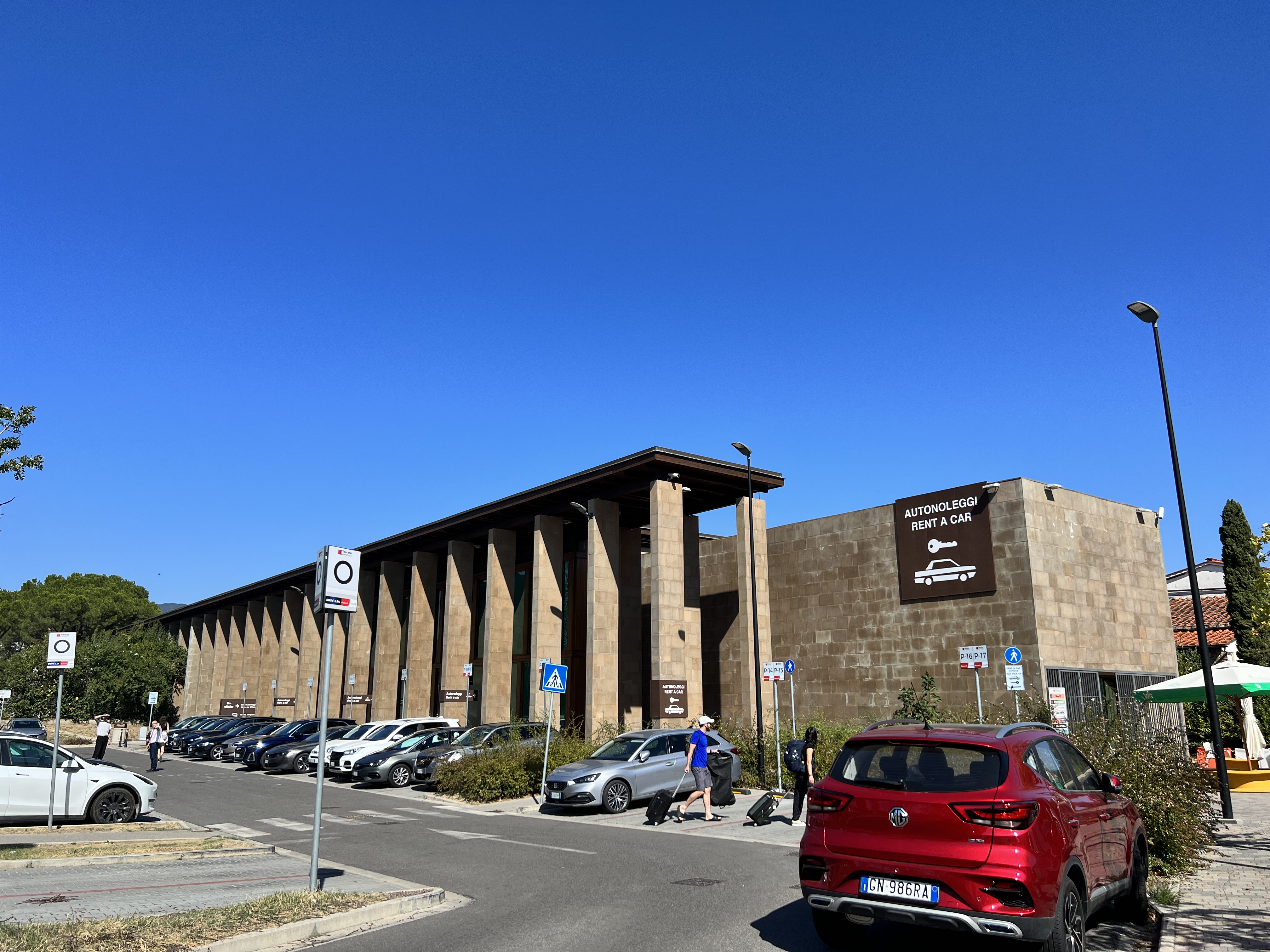 나중에 알고 보니 피렌체 공항도 짐 분실로 악명이 높단다. 같은 비행기를 탔던 짐 분실을 한 사람들 얘기를 들어보니 자기 가방에 gps가 달려 있는데 자기 짐이 피렌체 공항에 있는 걸로 나온다고 했다. 그래도 이미 나와버린 이상 들어가서 찾을 방법이 없다고 하며 내일이나 모레 다시 오면 된다고 하는 걸 엿들었고 우리 짐도 피렌체 공항에 있을 것 같다는 생각을 하며 피렌체 공항 렌터카 구역으로 향했다. 렌터카 구역은 공항에서 제법 떨어져 있어 셔틀이 운행된다. 걸어서는 10분 거리이긴 한데 자동차전용도로에 가까운 길을 위험하게 걸어가야 하기 때문에 셔틀버스 이용을 추천한다.