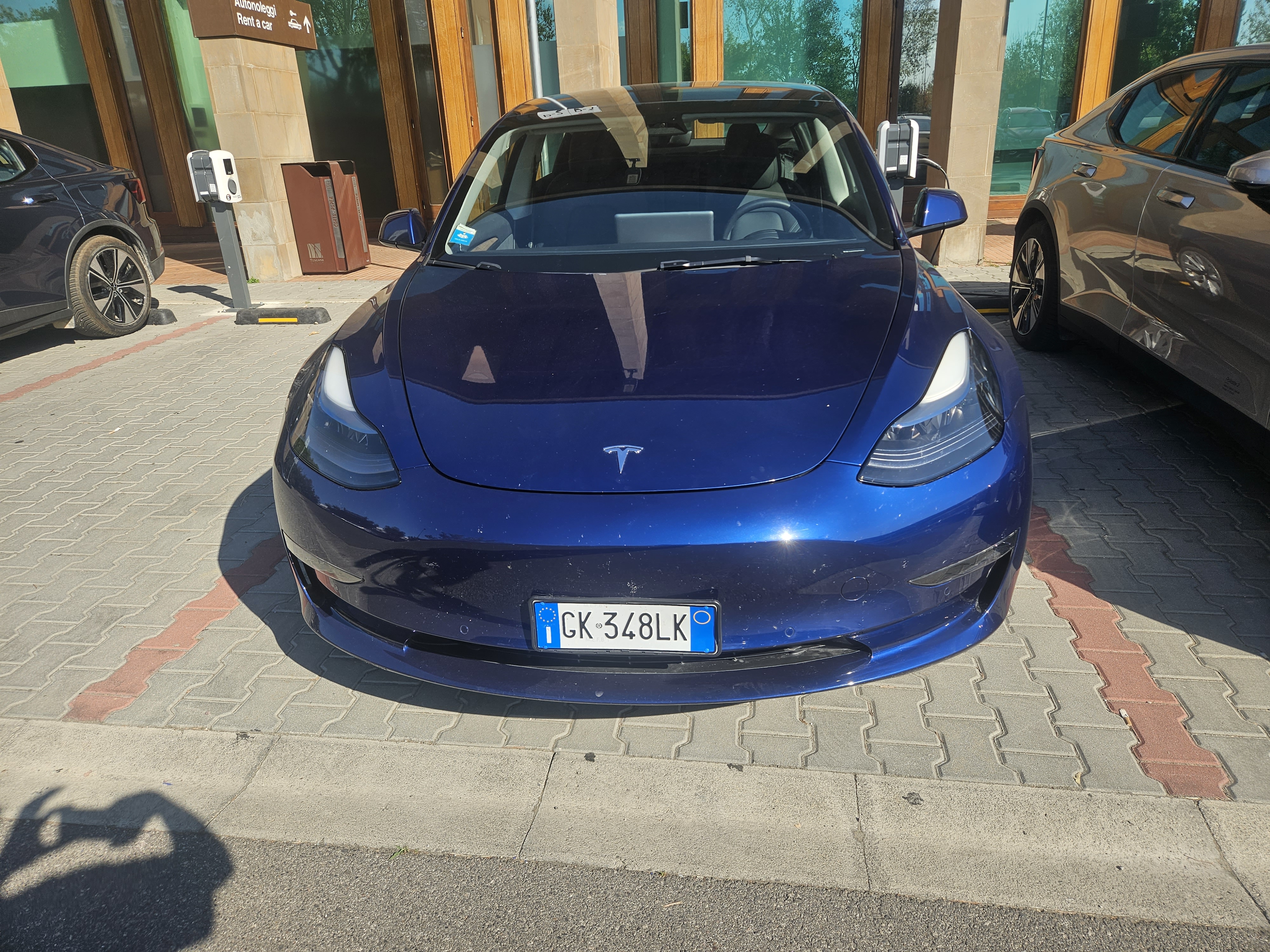 아그리투리스모 castello la leccia(카스텔로 라 레차)는 피렌체에서 차로 약 1시간 정도 거리에 있기 때문에 택시나 렌터카를 이용해야 한다. 우리는 숙박 중 사이프러스 길 포토스팟에 사진도 찍으러 갈 예정이었기 때문에 다시 렌터카를 이용하기로 했다. 이번에도 테슬라 모델3를 허츠를 통해 렌트했다. 피렌체 공항의 렌터카 픽업 사무실은 렌터카 회사들만 모아놓은 건물로 가야 한다. 길에 따닥따닥 붙어있는 작은 사무실은 반납사무실이다.