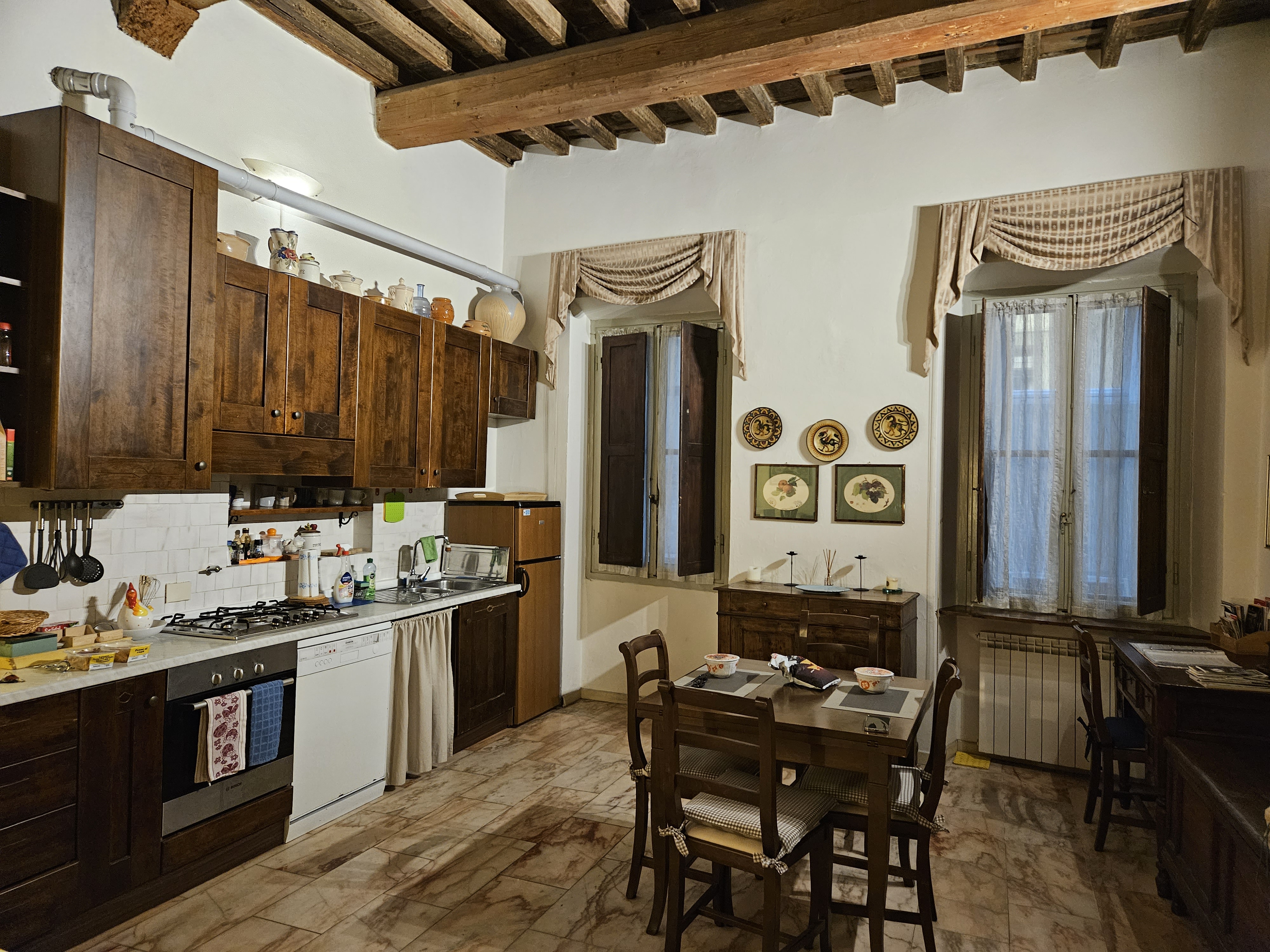 다만 전용 욕실이 있긴 한데 욕실 열쇠가 현관열쇠처럼 크고 오래된 느낌. 화장실 갈 때마다 잠금 해제했다가 안에서 잠겄다가 다시 나와서 잠궜다가 우리 방문 열었다가... 엄청 불편했다. 그리고 테라스도 사진을 봤을 때는 밖에 발 딛일 곳이 있어 보였는데 실제로는 나가기 불안해 보이는 곳이었다. 그냥 콘셉트샷만 찍음.