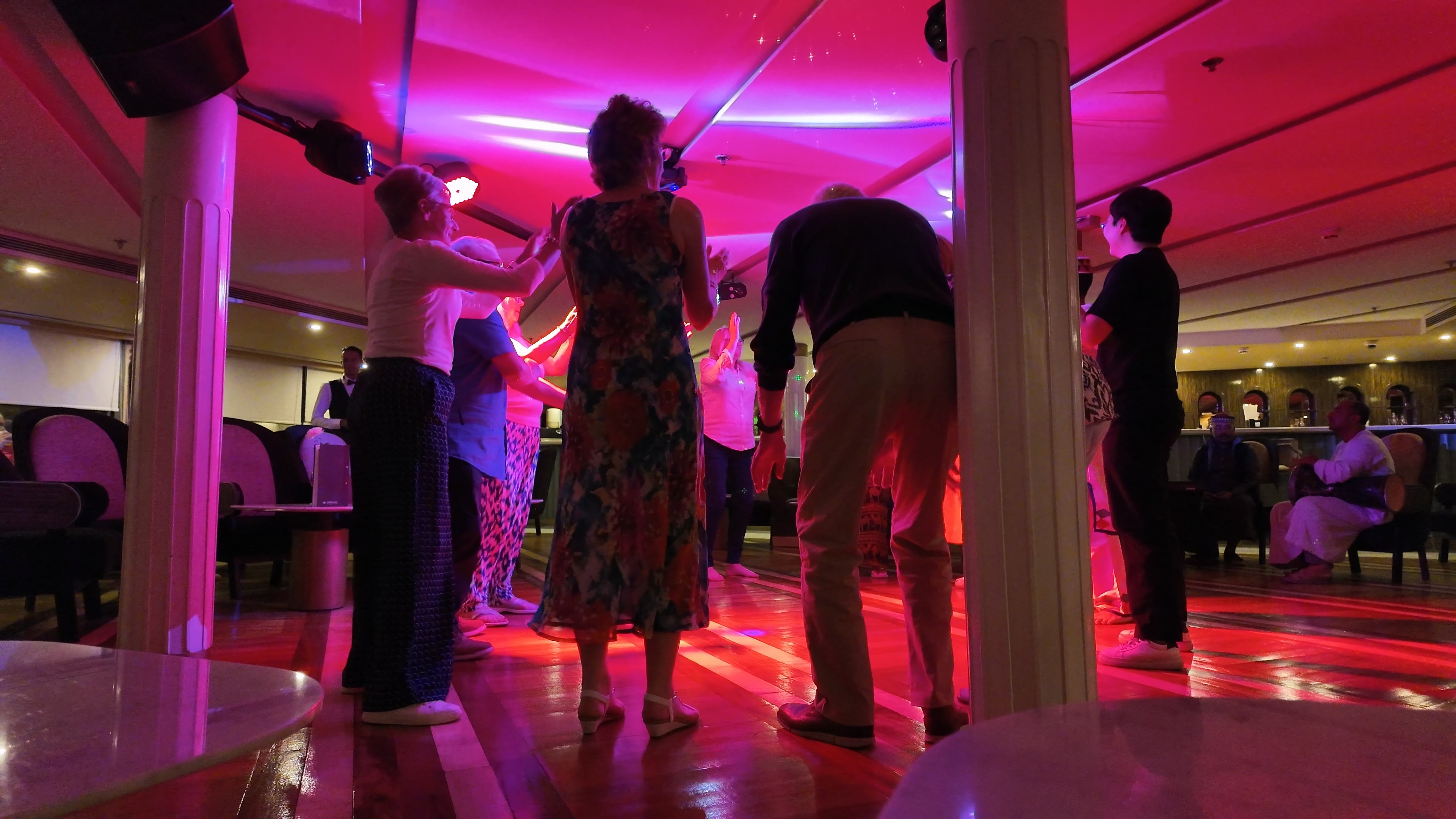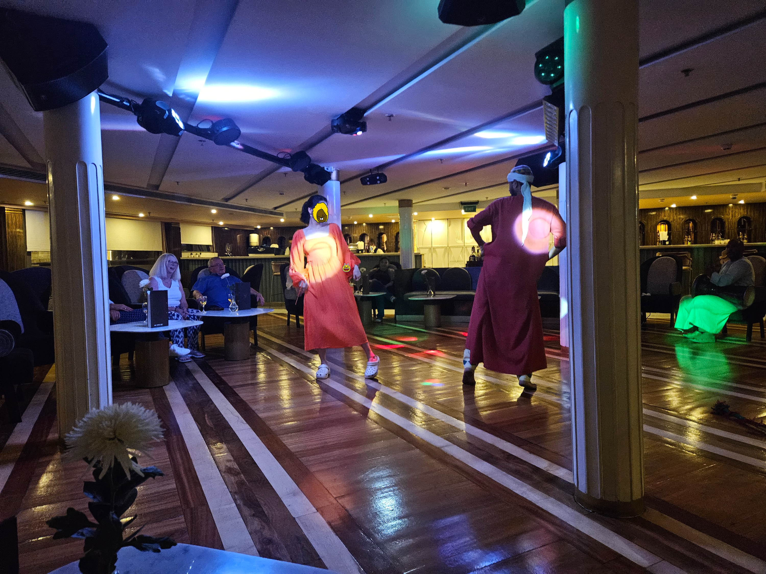 크루즈에서는 매일 저녁 식사시간 후 엔터테인먼트 시간이 있었는데 첫날은 벌룬 타러 가는 날 전날이라 일찍 잔다고 못 가고, 둘째 날은 마사지받는다고 못 가고, 셋째 날은 갈라베야 옷 없어서 안 가고, 이번에는 마지막날이니 한 번 가보자 해서 누비안쇼는 참관하러 갔다.