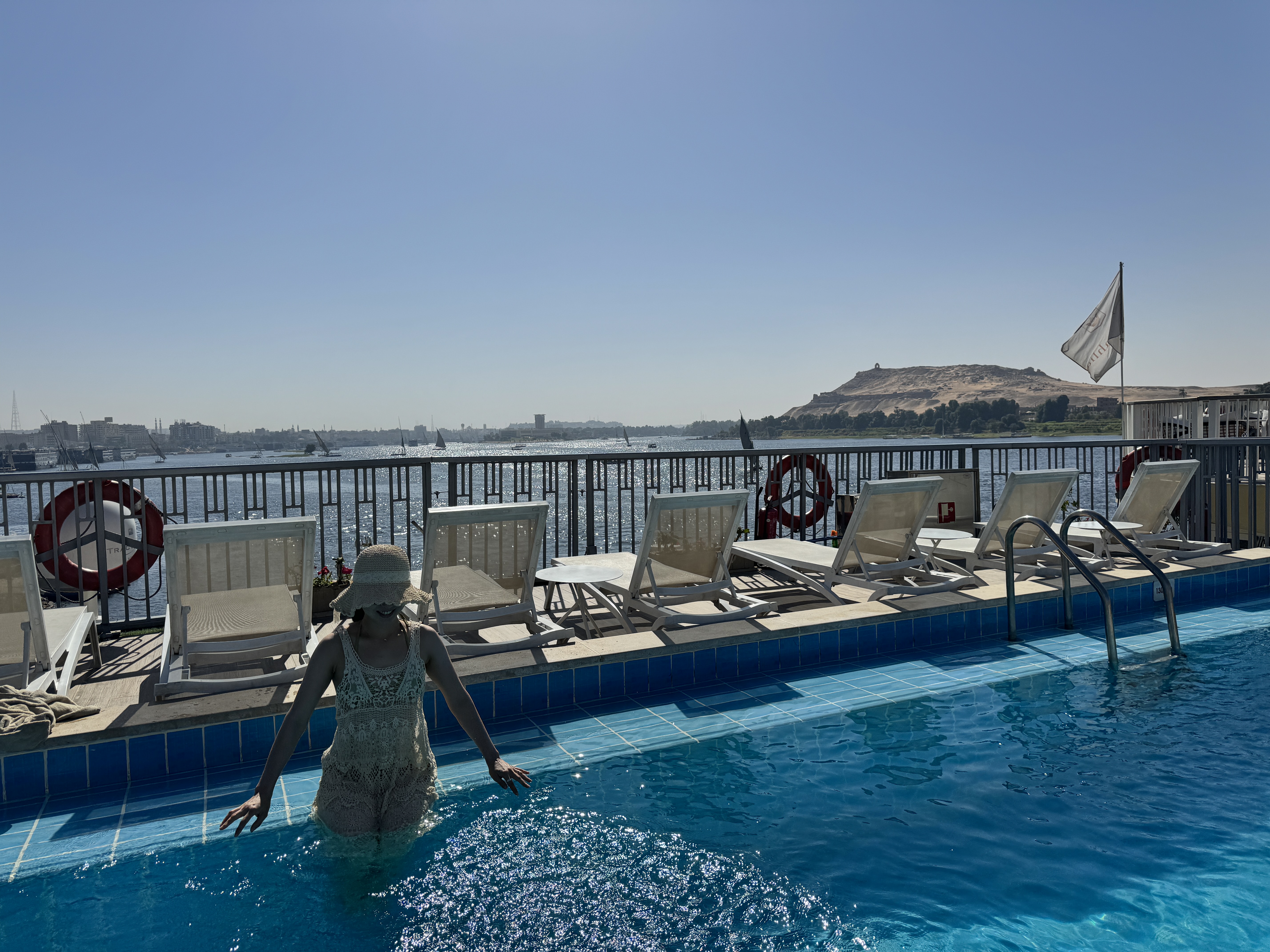 와이프는 뒤늦게 이거 어떡하냐며... 프론트에 도움을 요청하러 갔고... 결국은 한참을 실랑이하다가 결국엔 내가 던져줬는데 물건을 받고도 가지도 않고 계속 우리 방 아래쪽에 배를 묶어놓은 상태로 에스나까지 갔다. 덕분에 테라스에 없는척하며 조용히 있을 수밖에 없었다. 하도 시달리기도 했고 이 잡상인들이 포기를 모르고 헬로 헬로 헬로 하면서 호객을 하는 통에 헬로 소리에 트라우마가 생겼다.