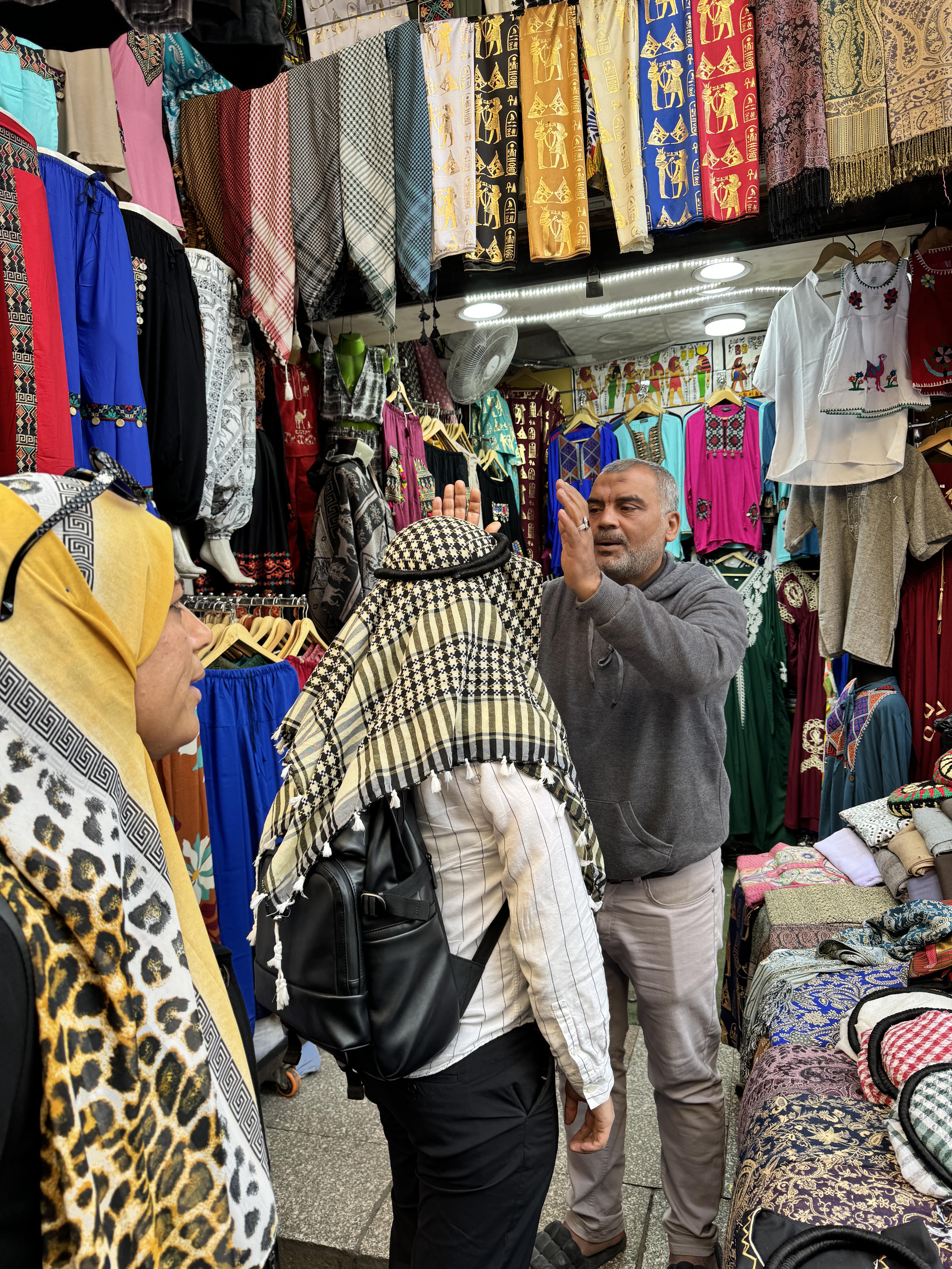 바뀐 항공편 덕분에 시간이 많이 남아서 드라이버가 소개해주는 갈라베야 판매점에 갔다. 시장이나 길거리에서 파는 갈라베야는 품질이 안 좋아서 코스프레용 옷 같아서 사기가 꺼려졌는데 여기는 현지인들이 실생활에서 입는 것들을 파는 느낌이었다. 개당 889파운드에 둘 다 갈라베야를 샀다. 스카프도 개당 400파운드 정도. (사막투어 때 입음 ㅎ)