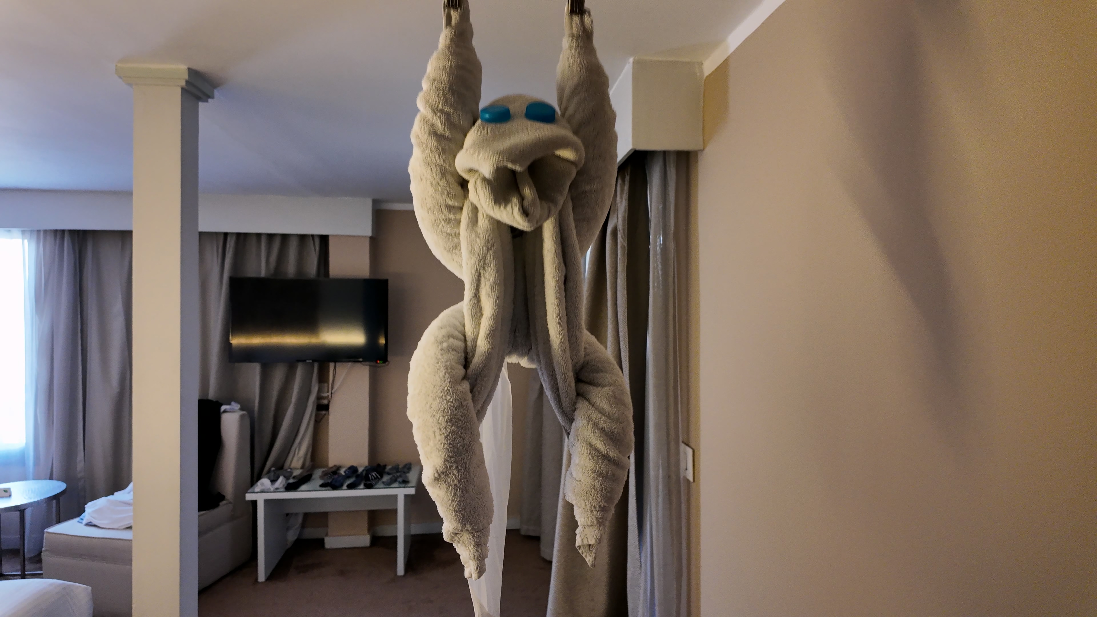 2시간 정도 낮잠을 자고 방으로 돌아가니 방청소가 되어있었고, 수건으로 동물을 만들어두고 나가셨다. 깨알 웃음제공
