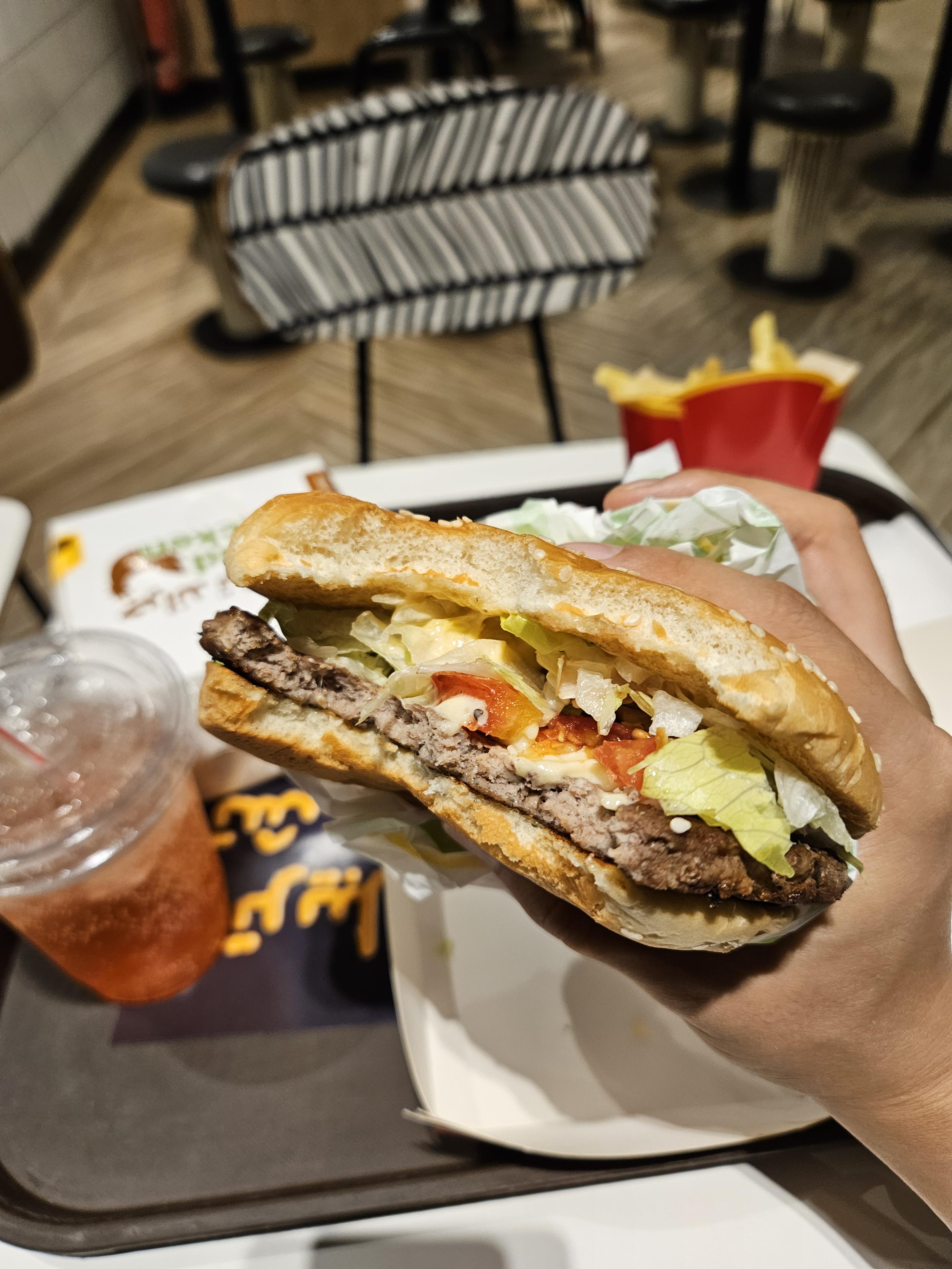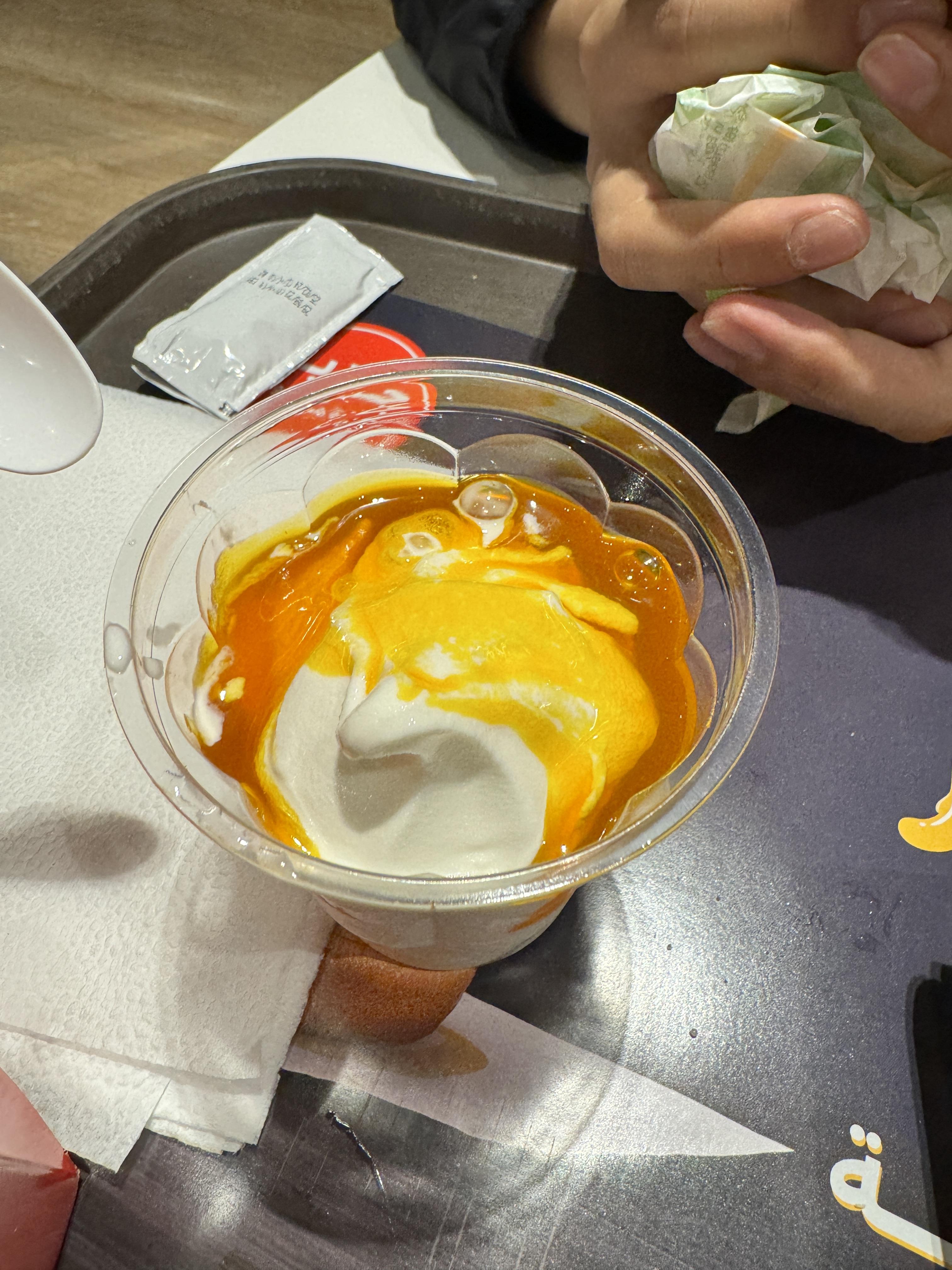 나는 비프, 와이프는 치킨을 먹었는데 치킨버거에서는 약간 중동맛이 났다. 그리고 딸기맛 탄산과 망고맛 맥플러리도 시켜봤는데 딸기탄산은 불량식품맛. 망고 맥플러리도 망고 시럽이어서 엄청 맛있진 않았다. 총 365 파운드.