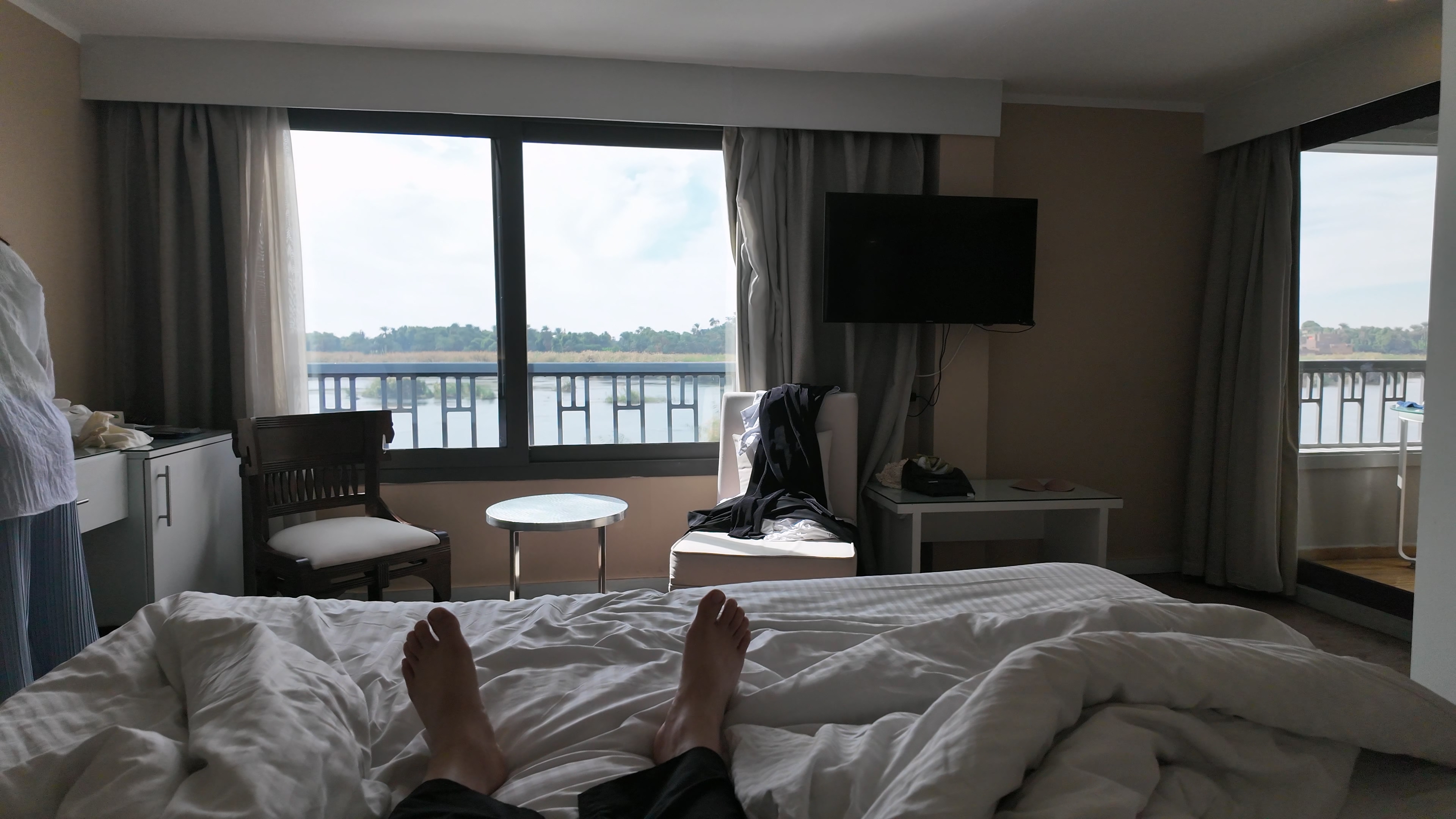 우리 방 안에서 드러누워 나일강 풍경을 구경하고 있자니 크루즈여행을 이 맛에 하는구나 싶었다. 여기서 나일강의 정기를 받았다.
