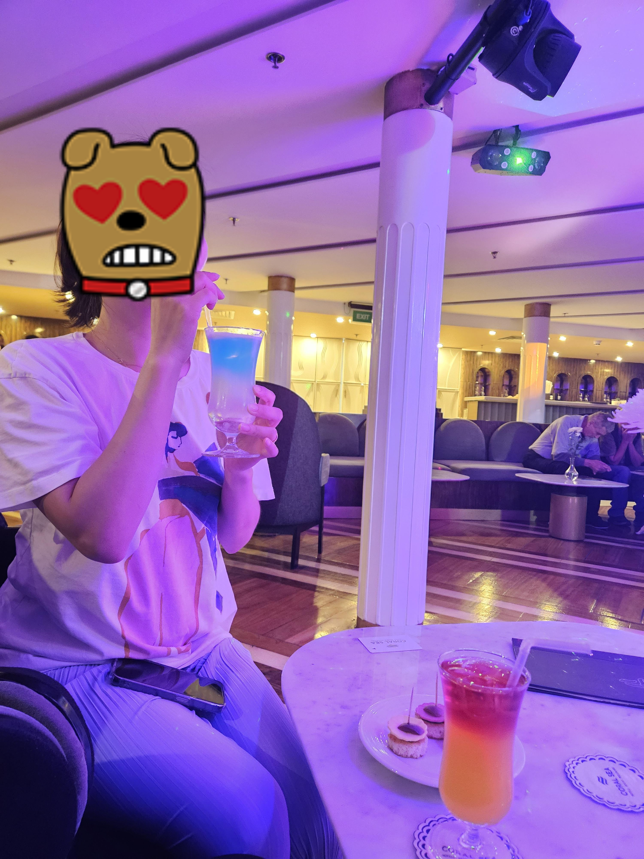 크루즈 2일째에는 저녁식사 전 칵테일 아워가 있다고 안내가 있었다. 하지만 어차피 우리 짠순이 와이프는 비싸다고 안 먹는다고 할게 뻔한데 안 갈 거라고 했다. 근데 와이프가 혹시 모른다며 혼자서 끝나기 10분 전에 가보곤 공짜인걸 확인하고 공짜술을 한 잔 마시고 왔다. 메뉴판 상 750 이집트파운드나 하는 걸 공짜로 마셨다고 좋아한다. 대신에 도수가 센 칵테일을 10분 만에 호로록 마셨더니 둘 다 알딸딸해진 상태로 저녁을 먹게 되었다.